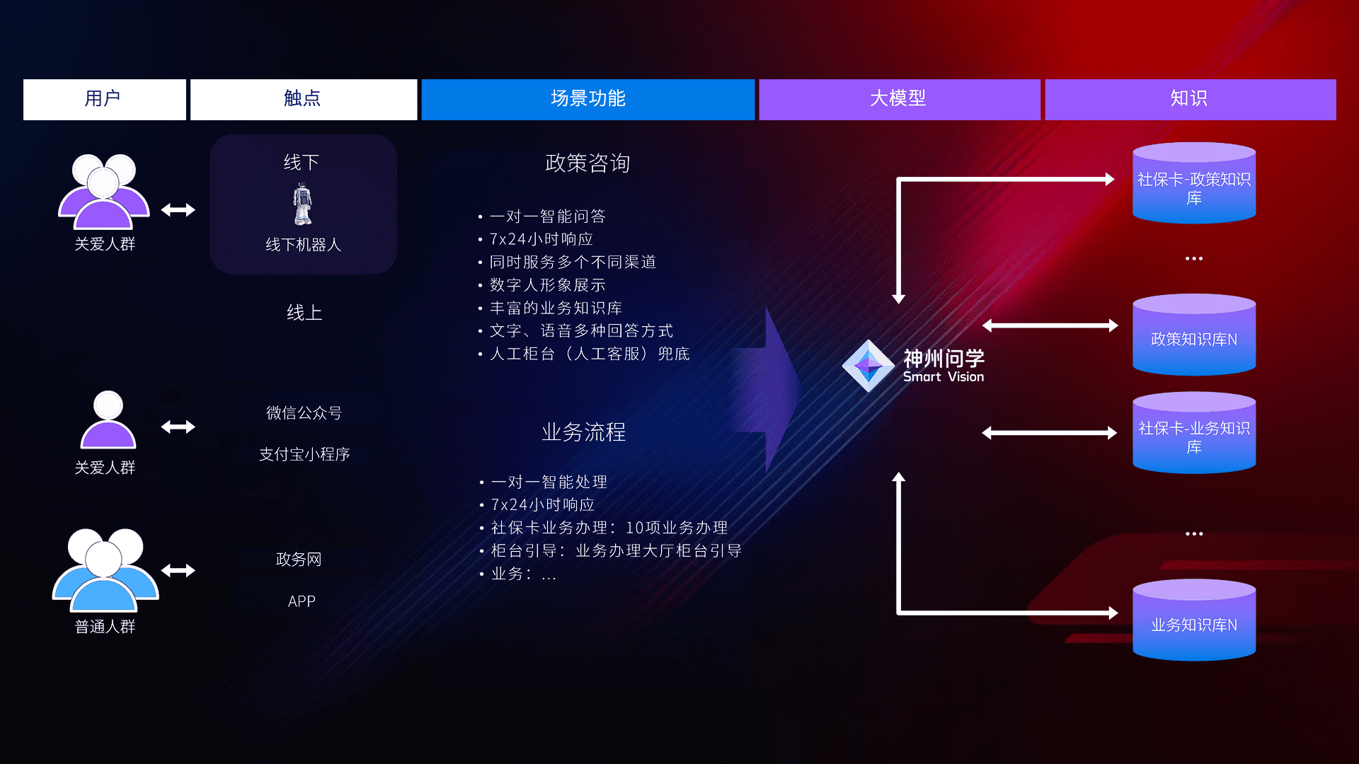 • 线上线下全覆盖:线上提供微信公众号、、、、支付宝小程序、、、、政务网、、app多种渠道,,,与线下机器人形成完整服务体系。。
